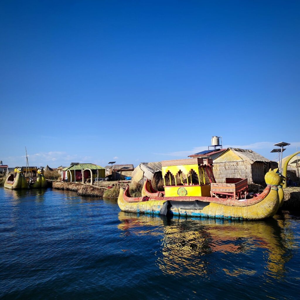Ich war neugierig auf die Attraktionen Perus und da lag es nahe, gleich mit dem Titicacasees und den schwimmenden Inseln der Uros zu beginnen. Mir fiel der Vergleich zum 16mal kleineren Bodensee einen, auch dort gab es „Lebensinseln“ in Form von Pfalbauten auf dem Menschen lebten und vermutlich auch Schutz fanden vor äußeren Gefahren. Denn ursprünglich begannen die Uros schwimmende Inseln zu bauen, um sich vor den kriegerischen Inkas in Sicherheit zu bringen.